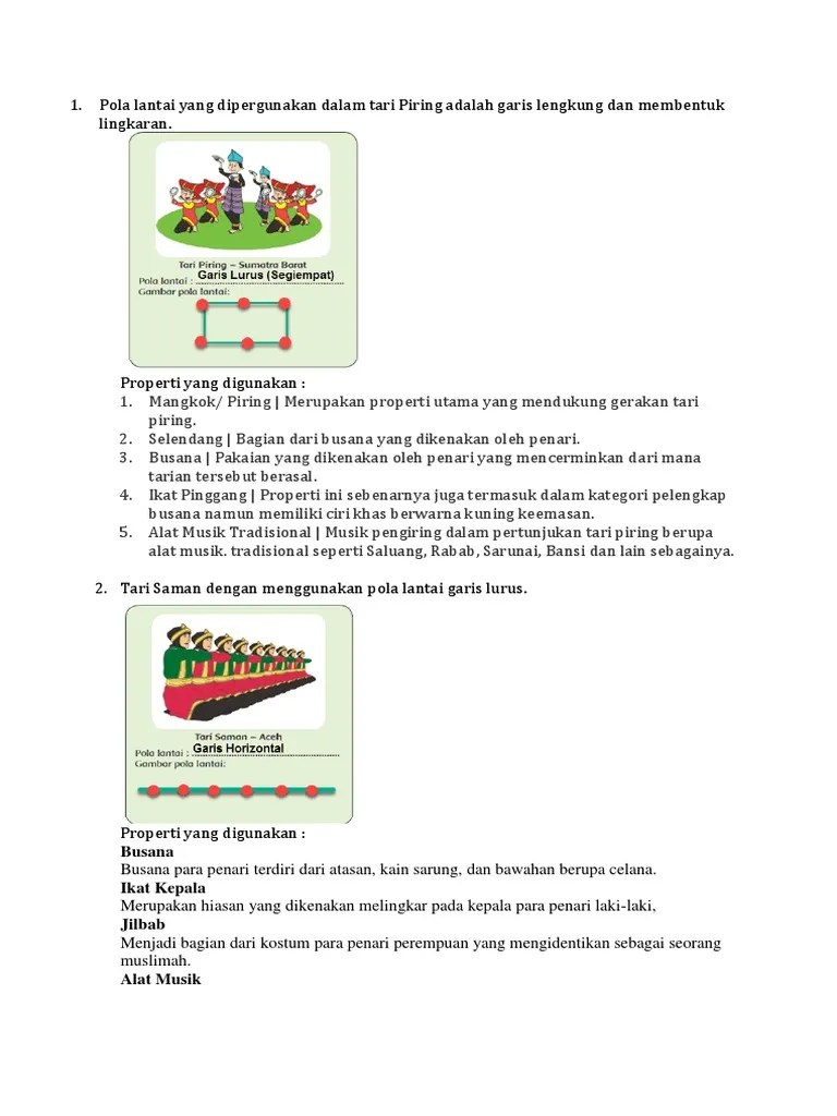 Tari Saman Gambar Pola Horizontal Visitbandaaceh Com from imgv2-2-f.scribdassets.com Pola lantai dengan menggunakan garis lurus dan garis lengkung biasanya tarian yang berhubungan dengan hal magis atau keagamaan. Selain itu pola lantai ini melambangkan kesan. Garis lurus pada tari saman atau bedaya merupakan simbolisasi pada hubungan vertikal dengan tuhan dan horizontal dengan lingkungan sekitar. Pola lantai pada tari kerakyatan biasanya menggunakan campuran kedua pola lantai tersebut. Seperti apa pola lantai yang berlaku dalam tari saman. Saat kita menyaksikan pertunjukan tari saman, kita bisa melihat dengan jelas para penari utama menunjukkan pola lantai berupa garis lurus ini. Dalam tarian saman, pola lantai yang berlaku adalah pola garis lurus. Gerakan tari saman tergolong cukup rumit serta membutuhkan tingkat konsentrasi yang tinggi, dan latihan teratur sehingga penari dapat menguasai tarian ini dengan baik.